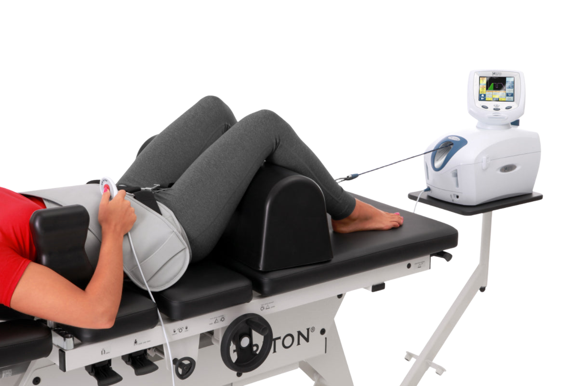 Spinal decompression gently stretches the spine using advanced mechanical traction, reducing pressure on the intervertebral discs and surrounding structures. By creating negative pressure within the discs, the therapy helps: